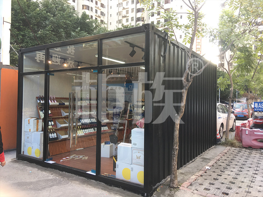 展柜外觀使用黑色噴漆,簡潔大氣。內(nèi)部平面裝修,搭配射燈,視覺明凈,可以很好地將顧客的注意力吸引至琳瑯滿目的紅酒產(chǎn)品上。